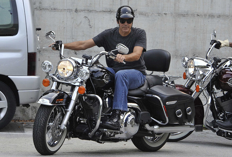 Son muchas las imágenes de George Clooney montando en moto. Aficionado a las dos ruedas desde bien joven, y siguiendo su sofisticado estilo, el actor y guionista estadounidense siempre ha tenido un peculiar y refinado gusto por las dos ruedas. Eso incluye motos como Harley-Davidson, Triumph... Y hasta scooter.