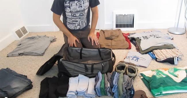 En él puedes ver a Tom Ayzenberg preparando su maleta para estar fuera de casa durante un mes con lo imprescindible para que no lo miren mal cuando llegue a un hotel ni tenga que ir vestido con harapos sudorosos. Todo un logro, porque os puedo garantizar que en algunos hoteles todavía te miran mal cuando te ven aparecer vestido de moto y cargado con maletas.