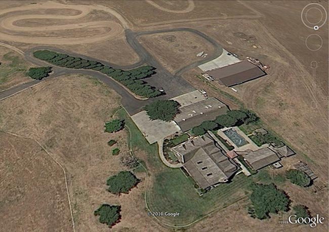 En el jardín encontramos la piscina, una sauna, un gimnasio y una bodega. También encontramos un garaje de tres plazas, con taller, un edificio con temperatura controlada dedicado a museo con su naya y otro parking privado. El chalet está situado en una parcela de 166 acres (166.718 metros cuadrados) rodeado de granjas, y en ella hay varios circuitos de tierra, algunos con saltos, una pista oval y un estanque con pesca. Todo esto puedes verlo en el vídeo que ha colgado en You Tube la inmobiliaria que vende el rancho.