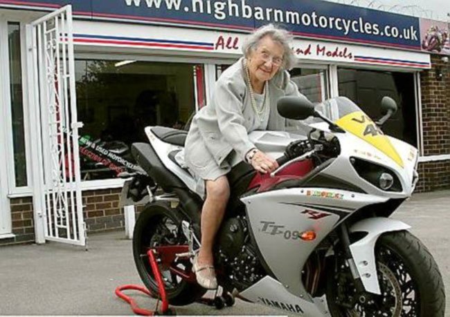 Y cuando digo mayor, que nadie se enfade diciendo que es mentira que el mayor fan es el, por que me refiero a la edad. Hilda Wright, una británica que acaba de cumplir 102 años, ha celebrado su cumpleaños sentándose en la R1 que utilizó Valentino Rossi durante la vuelta que dio en el trazado de la Isla de Man en 2009.