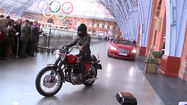 Según sus propias palabras conducir la moto por la estación de St.Pancras delante del Bentley y de una nube de fotógrafos ha sido todo un honor. Veremos si esta novela llega a las pantallas de cine y quién hace el papel de Chica Bond en ella. Mientras tanto esta modelo-piloto no lo hace nada mal, si tenemos en cuenta que una de estas motos con el cambio en el pie derecho y con las marchas en sentido contrario suele ser todo un reto para los que estamos acostumbrados a conducir con los mandos en la posición actual.