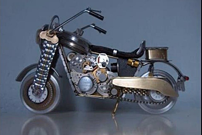 Hace ya unos cuantos años, nuestro compañero Fausto nos trajo una colección de motos fabricadas a partir de piezas recicladas de relojes que llamó poderosamente la atención. Pero aunque parezca raro, hay más gente con la misma afición como el caso del granadino afincado en Asturias Luis Robles.