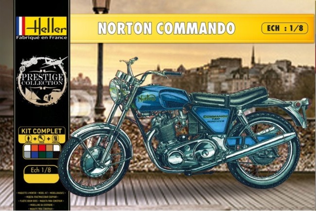 Y como uno no puede evitar rememorar la infancia, cuando destrozaba las maquetas de mi hermano intentando jugar con ellas, no puedo dejar pasar de largo esta Heller Prestige Collection. Porque el fabricante francés de maquetas mantiene en su catálogo de motos, además de una amplia colección de MotoGP a escala 1:12, unas cuantas clásicas a escala 1:8 con una pinta impresionante.