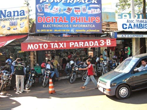 Eso si: intuyo que es un fenómeno que se da con más facilidad en países en los que las leyes permiten el desarrollo de medios de transporte más “informales”. En algunas zonas de Asia como Tailandia o la India, las mototaxi funcionan normalmente, y también en algunos países americanos como Venezuela o Paraguay –donde fueron tomadas estas fotografías–, concretamente en Ciudad del Este, en la frontera con Brasil.