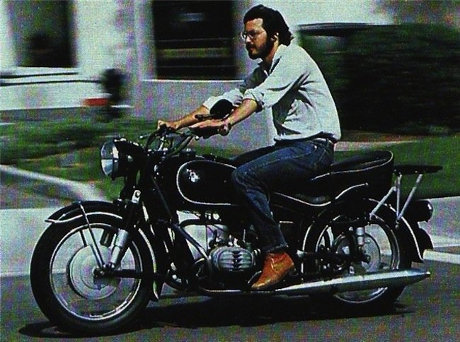 Amante de la libertad y de las motos, como se puede ver en esta fotografía conduciendo una BMW- R60. Puede que leas esta noticia desde un iPad o un iPhone o desde tu ordenador, ese que fabricó para hacer la comunicación más fácil entre nosotros. Para que puedas hacer más sencillo cosas que te gustan como leer este blog. Por ello desde Motorpasión Moto rendimos homenaje a este singular hombre que tiene mucho en común con nosotros, con el sentido de ir en moto, en ocasiones irracional pero que nos llena por dentro de verdad. Descanse en Paz.