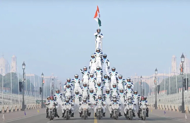 La ruta escogida fue emblemática: desde Vijay Chowk hasta India Gate, en la famosa Kartavya Path de Nueva Delhi en un paseo militar, porque sí, los 'Daredevils' son militares.