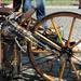 Y ojo, porque aquel motor de vapor estaba accionado por una pequeña caldera de carbón. La energía que creaba servía para mover las ruedas de madera con un sistema de bielas y manivelas. Tan simple como funcional; y lo que le dio el honroso título de la primera moto del mundo... Pero no tendría buen fin para él, sinceramente.