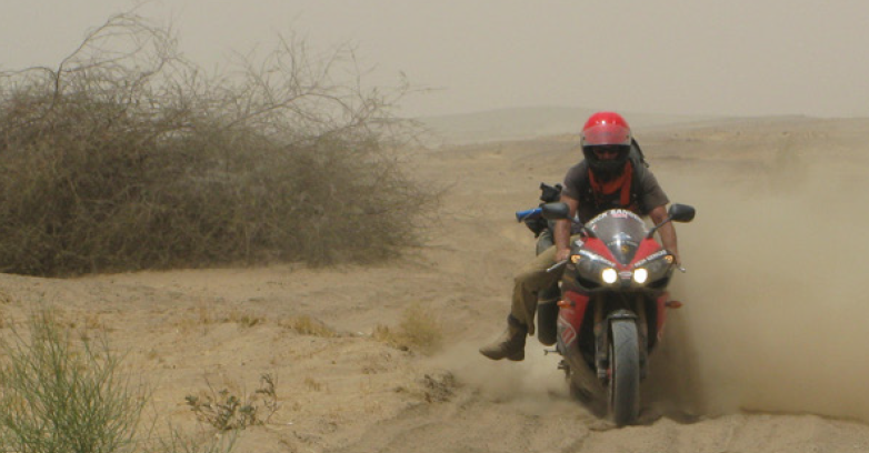 Pero eso no sería nada con lo que estaría a punto de hacer unos pocos más tarde. Viajamos espaciotemporalmente hasta 2005. En ese momento decide repetir la misma vuelta, pero en menos días, y sobre una bestia indomable: la Yamaha R1. Todo un desafío por su postura, ergonomía, potencia... Nada que ver con una trail o una moto de aventura.