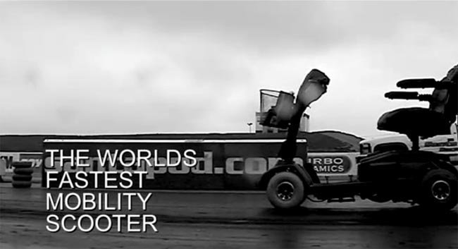 La noticia es que lo ha conseguido con bastante holgura, ya que han parado el cronómetro en 15,234 segundos, en la pista de Santa Pod, lo que equivale a 71,59 mph (115,21 km/h) Menos mal que este tipo de carritos no están homologados para que los use la gente normal, porque no quiero imaginarme a un octogenario yendo a más de 100 km/h por la calle. Y tampoco quiero imaginarme tener que hacer una frenada de emergencia con un aparato así.