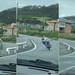 El ávido monociclista se prepara para el adelantamiento cogiendo impulso sobre el aparato, y allá que va: a falta de uno, adelanta a otro segundo vehículo (un Renault Megane), línea continua mediante mientras inclina el cuerpo.