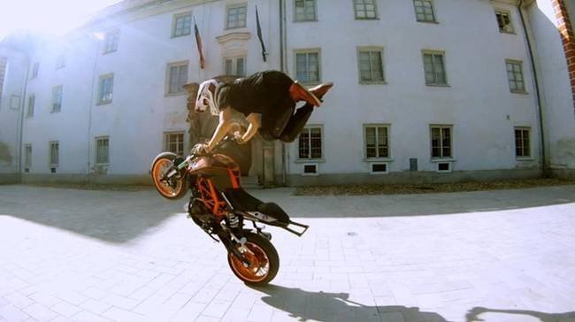 El vídeo se ha rodado en los exteriores del castillo de Murska Sobota, ciudad del noreste de Eslovenia. Tal y como el propio Rok Bagoroš nos cuenta, hace doce siglos, cuando el castillo fue construido, se celebraban festivales en los que se bailaba tanto dentro como fuera de él. Hoy, es la KTM 125 Duke de 15 CV la que nos deleita con danzas que normalmente estan reservadas a monturas mucho más potentes.