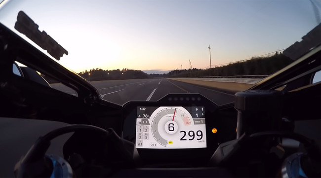 Y por si no te habías dado cuenta, ya con la quinta marcha engranada el cuentakilómetros digital de la pantalla marca una velocidad de 299 km/h, para seguir acelerando y ganando velocidad hasta seleccionar la sexta y seguir empujando, así que fácilmente se podría hablar de una punta superior a los 320 km/h.