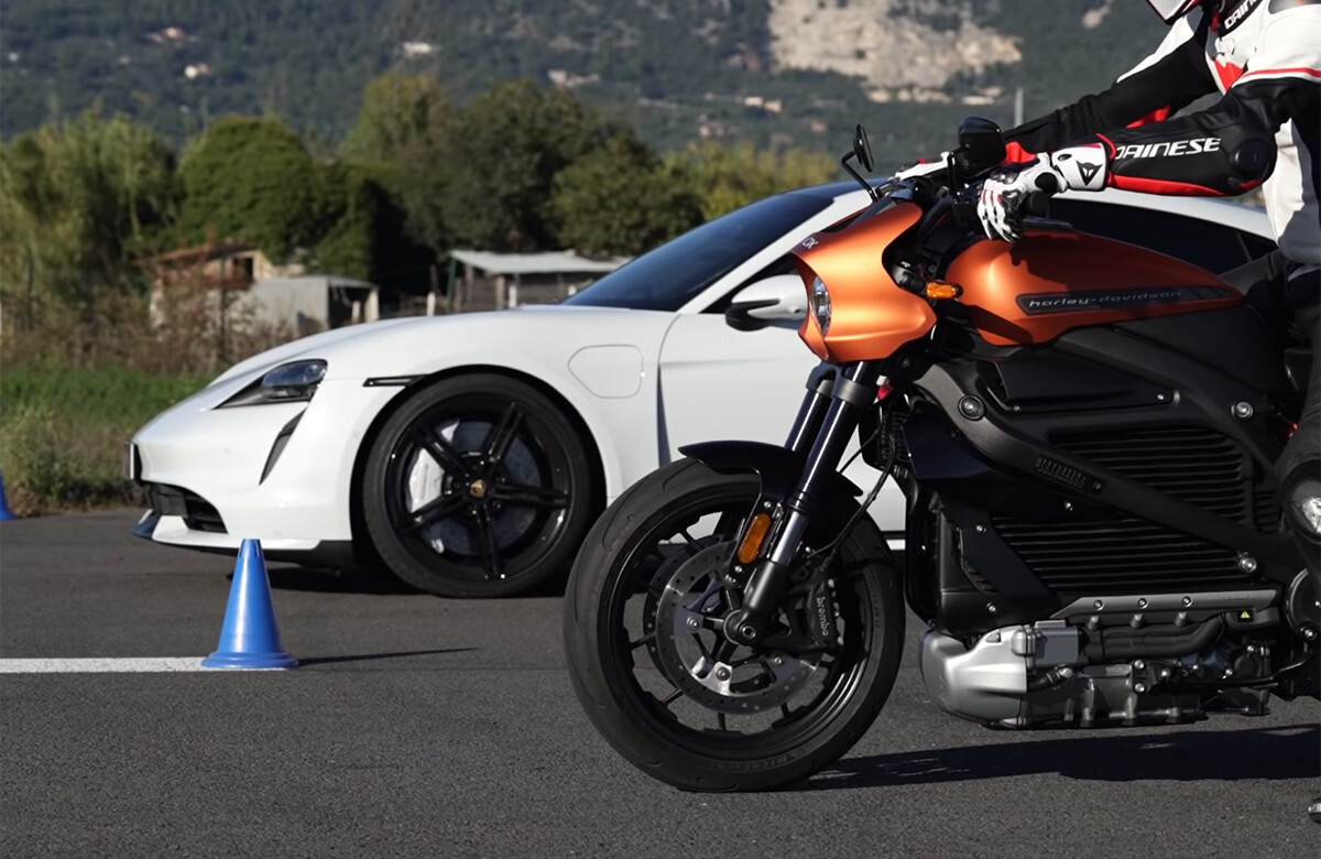 Y efectivamente el Porsche Taycan Turbo, una versión por debajo de la todavía más potente opción Turbo S, recorre la distancia hasta la meta (402 metros) en 11,34 segundos y a una velocidad de 234,1 km/h, mientras que la Harley-Davidson LiveWire hace lo propio en 12,64 segundos y con el cuentakilómetros digital marcando 178,1 km/h, algo más de la velocidad a la que supuestamente está limitada la moto.