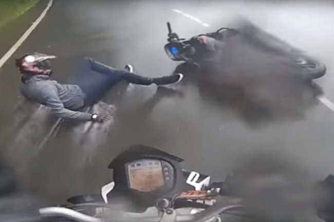 El vídeo que te traemos a continuación es la explicación gráfica de por qué los ABS están completamente justificados. Un grupo de amigos circulan en dos motos por la carretera de Shillong (India) bajo un aguacero. Al llegar la Pulsar sin ABS cae al suelo, quedando el conductor deslizando sobre la carretera y obligando a la segunda moto, una KTM con ABS a realizar una frenada de emergencia para evitar atropellar a su amigo.