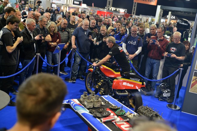 El Motorcycle Live 2019 (algo parecido al Salón de la Moto en España) fue el sitio elegido para que los asistentes al evento pudiesen aprender en directo cómo limpiaban y mimaban las entrañas de las motos de Barry Sheene.