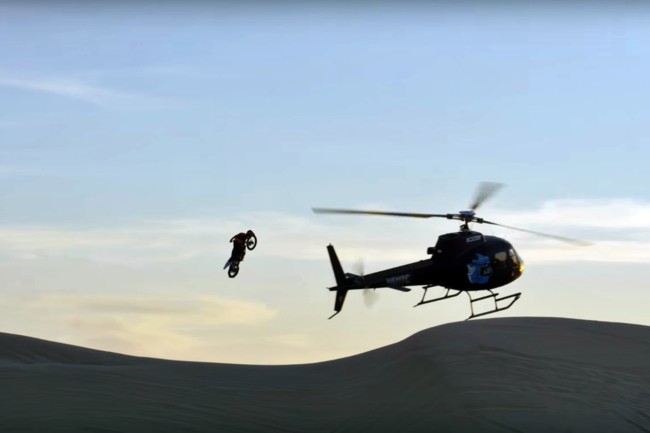 Numerosas motos de cross pilotadas por ilustres de la compañía como Jeremy McGrath, Tyler Bereman o Josh Hill, enormes todoterreno con sus monstruosos V8 bramando, la gigantesca Ford F350 de BJ Baldwin e incluso dos motos de nieve y dos Harley Davidson. Todos volando en una orgía de saltos sobre la arena americana.