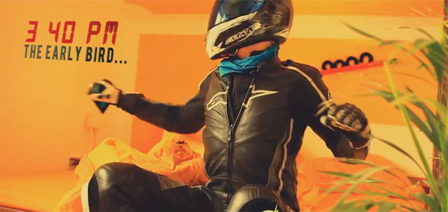 Aunque nuestro Morrillu es un poco más madrugador que este los desayunos creo que se parecen bastante (por lo de hacerlos incluso con el casco puesto) para luego salir a la calle a subirse a prácticamente cualquier moto que haya cerca. Lo del aseo personal creo que va un poco demasiado lejos ¿O quizá sea que realmente no hay una cara que lavar debajo del casco?