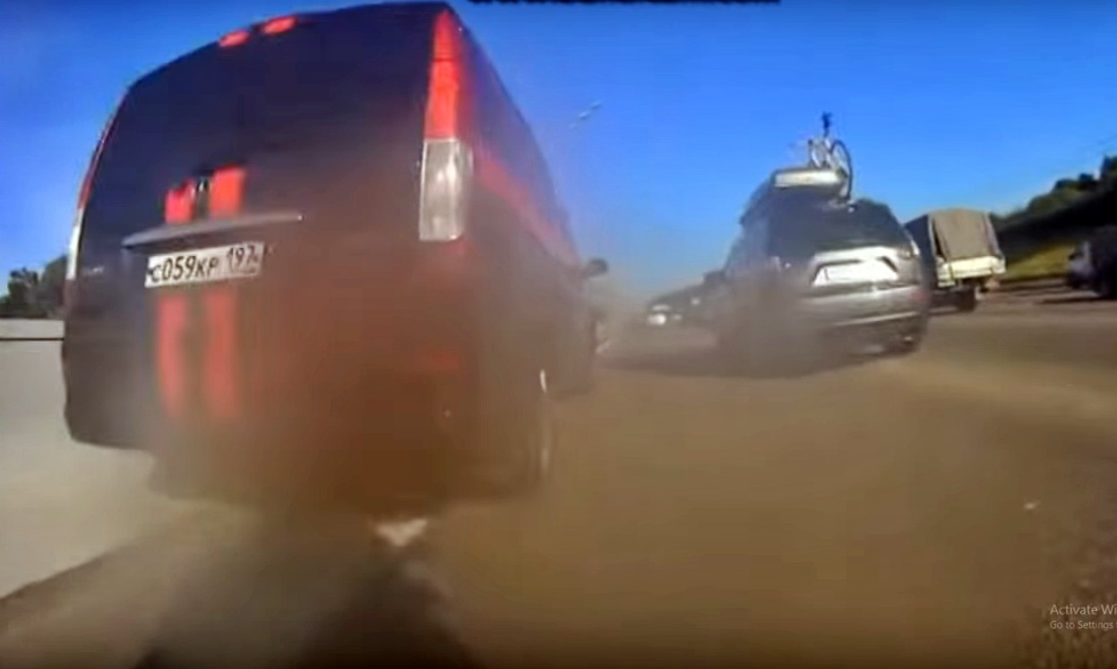La puerta del Lada de Piotr que se abre, o un Dimitri que intenta hacer del arcén un carril de adelantamiento (dos cosas bien comunes en los vídeos de la madre Rusia), y tenemos a nuestro querido Stanislav por los aires y finalmente enrollando la espina dorsal a una de esas farolas que sobresalen de la mediana y se ven tan contundentes.