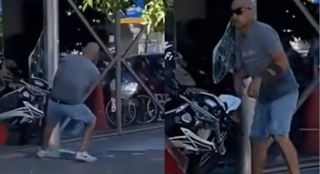 Sin estupor, a patadas contra la cristalera del concesionario de motos