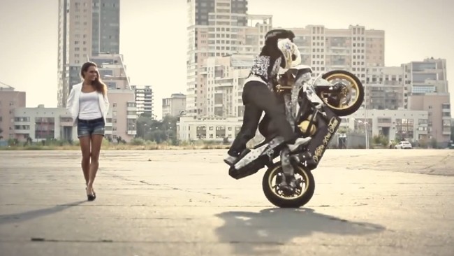 Hoy, nuestro amigo y Stuntman Roman Gasanyan, con una Kawasaki ZX 636 del 2004 (pero con carenado del 2008) es capaz de seducir a la modelo rusa Sofia Svanidze. Esta belleza de larguísimas piernas sobre tacones de vértigo, al ver a Roman con su moto por la calle, no duda en acompañarlo hasta un parking para verlo como hace acrobacias. Si esto no es ciencia ficción ya no se como calificarlo.