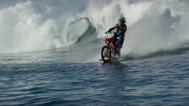 Venga, cierra ya la boca que la tienes abierta desde hace casi un mes cuando viste el vídeo de Robbie Maddison surfeando las olas con su moto de FMX y se te va a llenar de agua. No hay trampa ni cartón en la hazaña del piloto australiano, sino mucho esfuerzo, diseño y trabajo de dos años para conseguir una moto capaz de planear sobre el agua como si fuese sólida.