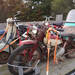 Junto a ella, otra pequeña Honda 50 en sorprendente buen estado, casi listo para arrancar. A partir de ahí, el nivel de rareza se dispara: una moto de los años 40 con motor Villiers, una Vespa Allstate (sí, la versión americana que Sears vendía con su propia marca) aunque sin motor, y una JC Penney Golden Pinto, una minibike casi de juguete que en su día se vendía por catálogo.