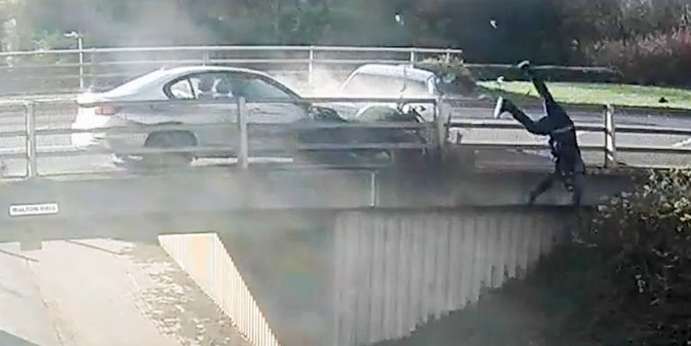 Entre las muchas situaciones surrealistas que se viven día a día en la carretera, la de hoy puede colmar el vaso de la irresponsabilidad y la venganza extrema. Es el ejemplo de cómo un incidente de tráfico puede escalar a algo mucho más grave, como por ejemplo que un motorista acabe volando por un puente.