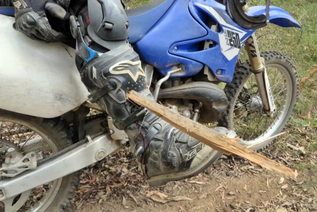 En lo que parecía una jornada perfecta, este grupo de moteros australianos disfrutaban de una ruta de enduro, perdidos en medio de la nada hasta que al pasar sobre un árbol caído ocurre algo que parecía imposible: un trozo de madera se clava en la pierna del motorista, atravesando la bota y las protecciones.