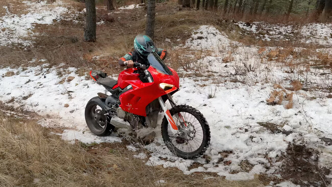 Ha aprovechado los restos de una Ducati Panigale V4 de 30.000 euros, siniestrada, pero todavía entera, y la ha reconvertido en una moto para offroad. Y contra todo pronóstico, también funciona. El resultado es poco menos que espectacular.