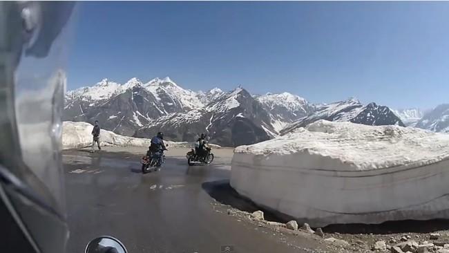 Todo esto tras sortear animales domésticos, otros no tan domésticos, coches, camiones y autobuses que circulan por la carretera que podemos ver en este vídeo y que según nos cuentan está en el Himalaya. Una de esas aventuras a las que todos nos gustaría apuntarnos. Es increíble ver por donde son capaces de pasar una Royal Enfield. Igual que es increíble ver al paisano del último torrente que se mete en el agua con los pantalones arremangados y unas sandalias. Como si estuviera en la orilla de la playa de Benidorm.