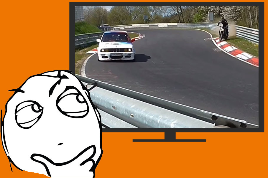 El reclamo de Nürburgring como fuente de turistas y aficionados está haciendo que cada vez más se parezca más a una autovía saturada de vehículo y antes o después, alguien cometen un fallo. Parece que es el caso del piloto de la Honda CB 1000 R del siguiente vídeo, que llega extremadamente pasado a una curva intentando adelantar a un BMW, se sale del asfalto y termina chocando contra las protecciones.