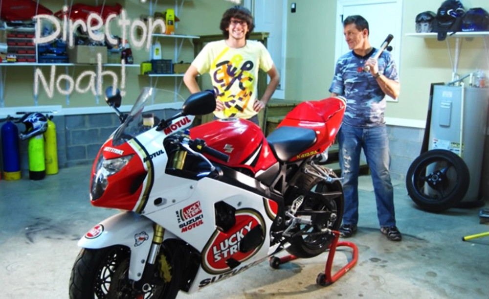 El vídeo rodado por el youtuber Noah Flanigan y su padre en 2009 es una genialidad de tipo stopmotion, una técnica de animación que consiste en aparentar el movimiento de objetos estáticos por medio de una serie de imágenes fijas sucesivas, y que en el video que nos ocupa tiene por protagonista a una Suzuki GSX-R 750 de 2004, la segunda generación que incorporaba la inyección en la superbike japonesa, y que para entonces ya había recebido muchos otros cambios, justo cuando su imagen fue renovada y se estilizó, volviéndose bastante más agresiva tanto en su parte frontal como en su colín.