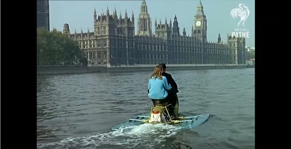 El segundo invento también tiene una relación acuática directa, aunque en este caso como vehículo mixto para la carretera y el agua. Define perfectamente lo que es un vehículo anfibio ya que mediante sendos flotadores laterales, permite al scooter navegar. Una vez en el agua, es la rueda trasera la que lo impulsa y la delantera quien permite gobernarlo, permitiendo incluso llegar a otra persona. Las escenas están rodadas en el río Támesis.