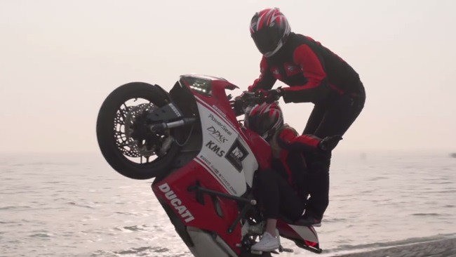 En la segunda parte del vídeo, y para recordarnos que Ducati cuenta con una buena parte de capital alemán a través de Audi, vemos como llega una acompañante de Jeremy que colaborará con él para hacer algunas acrobacias más. Y acabar haciendo un Burn-Out en un pantalán. Todo muy visual y con una estética bastante cuidada, hasta la música parece perfecta para las imágenes que campaña. Dale al play y disfruta de estos casi tres minutos que dura.
