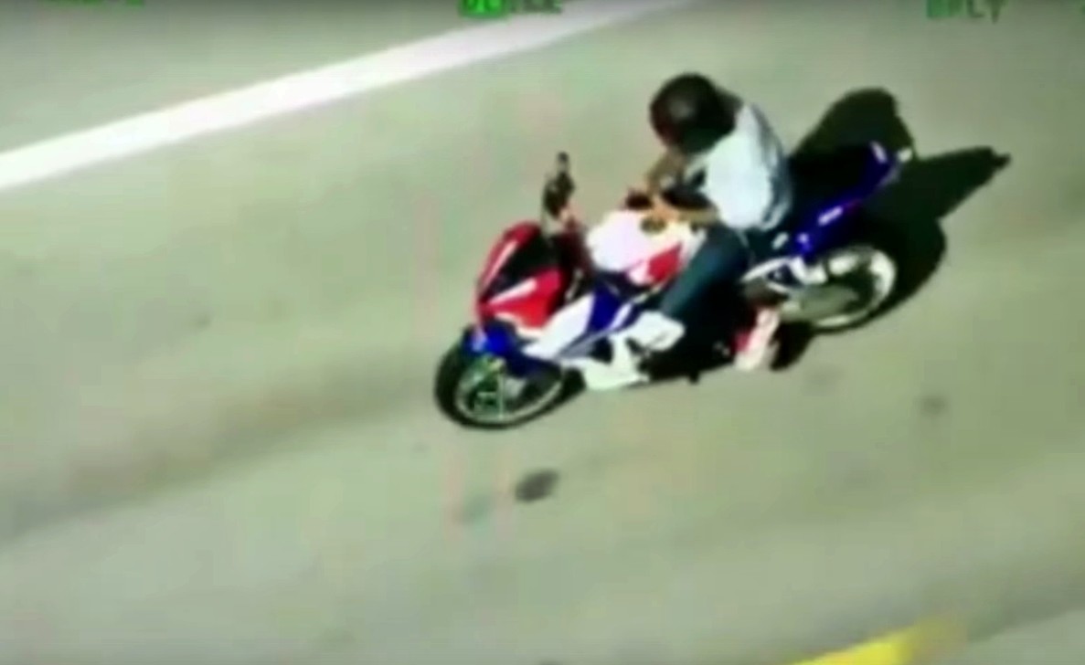 En el siguiente vídeo podemos ver cómo un pobre e indefenso cabezabuque que, circulando sobre su Honda CBR 1000 RR y seguido por un helicóptero, ha caído en una terrible dependencia con las redes sociales. Su pulso se acelera, la ansiedad crece y un sudor frío le recorre la espalda al notar cómo el teléfono ha vibrado en su bolsillo.