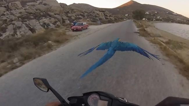 Vayamos primero con la parte "divertida", que no es otra que un vídeo en el que vemos a uno de estos loros echándose una carrera con un scooter. En el vídeo no se aprecia muy bien la velocidad a la que circulan, pero el loro demuestra es capaz de igualarla hasta casi poder aterrizar en uno de los retrovisores. Aunque al final el animal decida seguir volando hacia otro lugar. Espectacular vídeo, aunque en le veamos como los que van en la moto lo hacen sin el más mínimo equipo de seguridad.