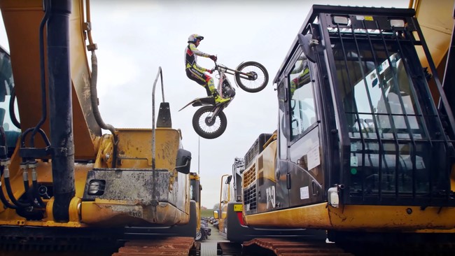 El nivel de Raga se elevó estratosféricamente en su rivalidad contra Bou y ambos son capaces de hacer maniobras imposibles subidos sobre una moto. El piloto de TRS ha hecho una pequeña parada en uno de sus viajes por el mundo para grabar una demostración, aunque en este caso la zona es un poco diferente, repleta de maquinaria.