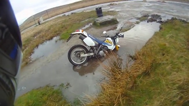 Algo así le pasó a este amigo, que circulando con su Suzuki DR350SE por un camino, se encontró con un charco que parece que conectaba esa zona del mudo con sus antípodas. Según sus propias palabras no se esperaba que fuera así de profundo, pero cuando se vio que el agua le llegaba casi al manillar se apartó un poco para ver la situación como era. La suerte para él es que no llevaba una maxi-trail de más de 200 kg. Porque sacar la moto del charco estirando del manillar no parece tarea fácil a no ser que lleves algo más ligero. O seas el primo de Chuck Norris. Y el tipo encima se lo toma a risas, todo un crack este amigo.