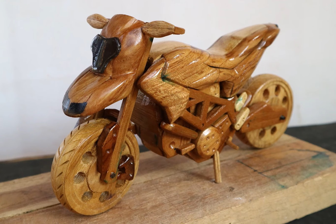 Los aficionados a las motos tenemos algo que nos mueve más allá de las cuestiones económicas. La pasión por las dos ruedas no entiende de barreras sociales y si ya hemos visto maquetas de motos de papel y de ganchillo, ahora vamos a ver una de madera hecha a mano.