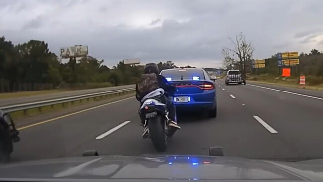 La policía estadounidense no se anda con chiquitas, aunque los delincuentes tampoco. La última toma viral de 'dashcam' de un patrullero yanqui tiene como protagonista a un narcotraficante fugado en una Suzuki Hayabusa de casi 200 CV al que terminan atrapando tras una épica persecución a más de 230 km/h en Georgia.