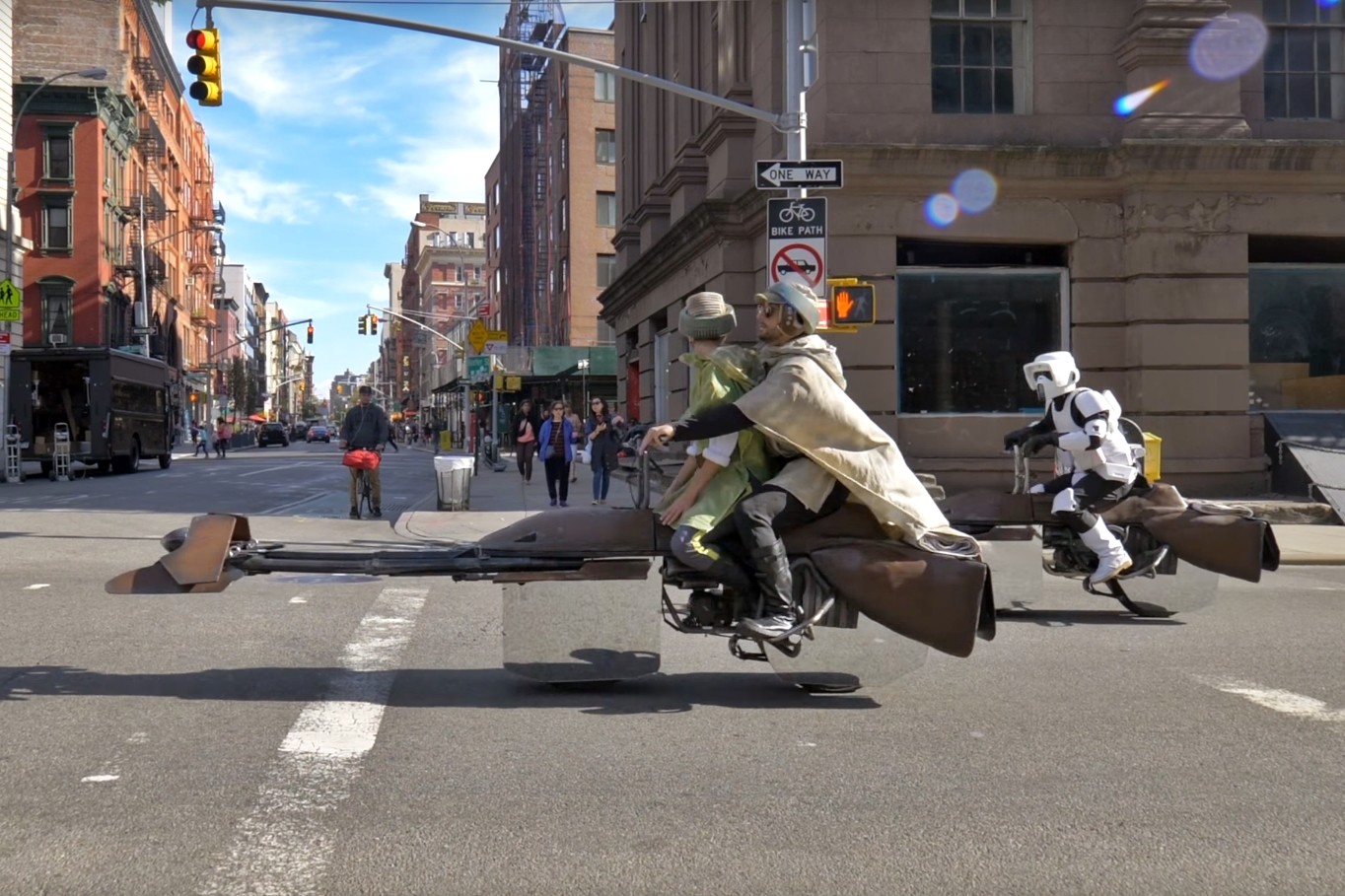 Este año, la gran sensación se ha levantado alrededor de un proyecto que ha causado fascinación a quienes han podido verlo. Inspirados en Star Wars, un pequeño taller ha creado dos motos voladoras Speeder, unos disfraces a juego y el resultado ha sido realmente espectacular. ¡Levitan!