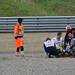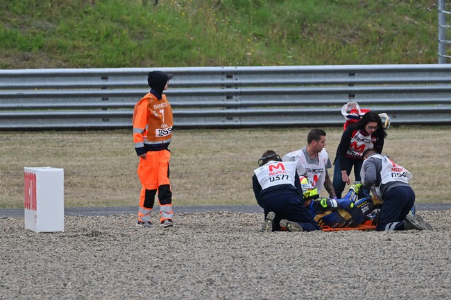 El paso del mundial de Superbikes por la República Checa nos proporcionó una imagen que creíamos insólita, con Dominique Aegerter, el líder del mundial de Supersport, fingiendo una lesión después de una caída para provocar una bandera roja que suspendiese la prueba y le permitiese volver a ella.