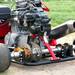 Total, que el propulsor de cuatro cilindros y 750 cc rinde 155 CV de potencia. En una moto ya son muchos, pero en un kart son demasiados debido a lo ligero del chasis. El enorme propulsor sobresale de la estructura multitubular del pequeño kart, y es una máquina de guerra.
