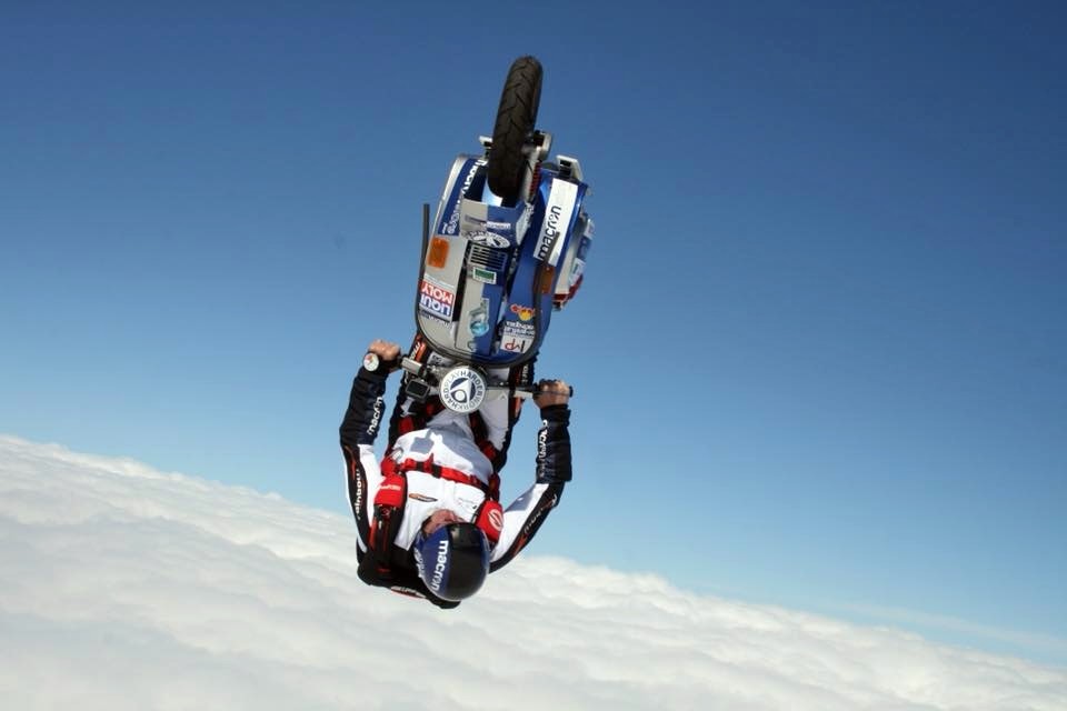 En un concepto donde cabe prácticamente todo y dentro del que Travis Pastrana se ha marcado un remember de Evel Knievel, siempre hay hueco para innovar. Innovar o lo que quiera que sea tirarse desde una avioneta a miles de metros de altura montado en una Vespa e intentar hacer piruetas.