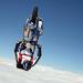 Lumpi ha subido su moto a un avión para elevarse por encima de las nubes (23.000 pies, 7.010 metros), lanzarse al vacío y empezar a hacer acrobacias. Bueno, o intentarlo, porque a la vista del resultado no parece que haya conseguido algo demasiado digno y es más una lucha por mantenerse unido a su Vespa hasta que no ha aguantado más.