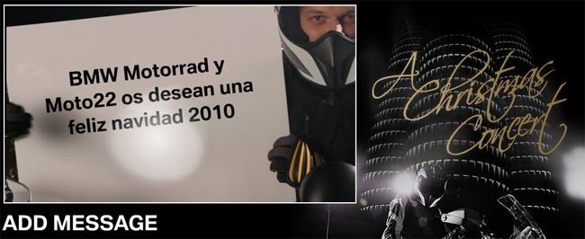 Con solo tres sencillos pasos BMW Motorrad pone a tu alcance una felicitación navideña personalizada. La idea es que subas una foto con tu propia cara, con esta de fondo completes la felicitación y se la envíes a la persona que quieras. Además para acompañar esta felicitación puedes incluir un vídeo en el que utilizan como instrumentos algunas motos de la marca alemana para interpretar el villancico "We wish you a merry christmas" aunque si alguien utilizase mi moto como tambor creo que se iba a llevar una bonita sorpresa, por mucho villancico que sea la canción.