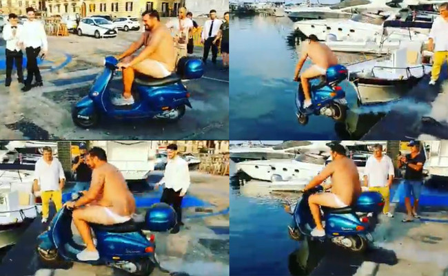 Hace unos días colgó en su Instagram cómo hacía una apuesta con un camarero de un bar de Nápoles por lanzarse al mar semidesnudo con una Piaggio Vespa por 2.000 euros. Ahora parece que el juego les puede salir caro.