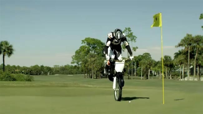 He de reconocer que cada vez que veo un campo de golf con tantísimo verde perfectamente cuidado me entran unas ganas locas de echar a correr por él, más que nada por aprovechar algo ese espacio tan infrautilizado. Quizá tenga la culpa ser de una región dónde todo hay que regarlo con goteo y cuidarlo con unos mimos que para sí quisieran algunos jardines normales. Y que creo que es una de las que más campos de Golf tiene por habitante. Así que cuando he visto este vídeo inmediatamente me ha llamado la atención, porque mezcla Golf y Motocross.