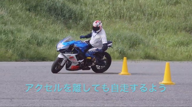 Solo con el empuje del motor al ralentí y con pequeños toques del freno trasero consigue realizar el circuito entero demostrando su pericia. Es una forma de demostrar que una moto no se conduce solo con las manos sino con todo el cuerpo y que, mientras que haya algo de tracción, la moto se puede mantener equilibrada. Eso sí, Masaki reconoce que ha tenido la ayuda de un amortiguador de dirección.