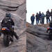 Pero es que no todo termina ahí. Para revertir la situación y demostrar que la R6 vale para todo, afronta una bajada con un charco que hay que sortear. Pan comido para una enduro, ¿pero una R con semimanillares? A golpe de gas y derrape incluido. corona la acción ante la atenta mirada del resto de aventureros que sí van con una moto de enduro.